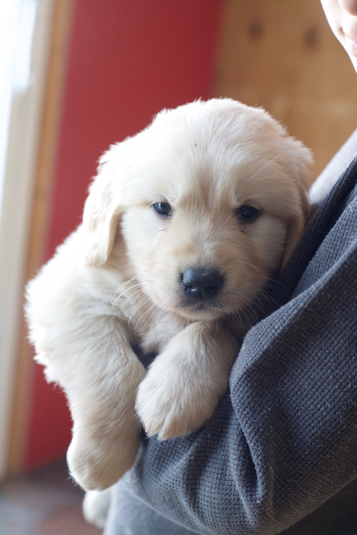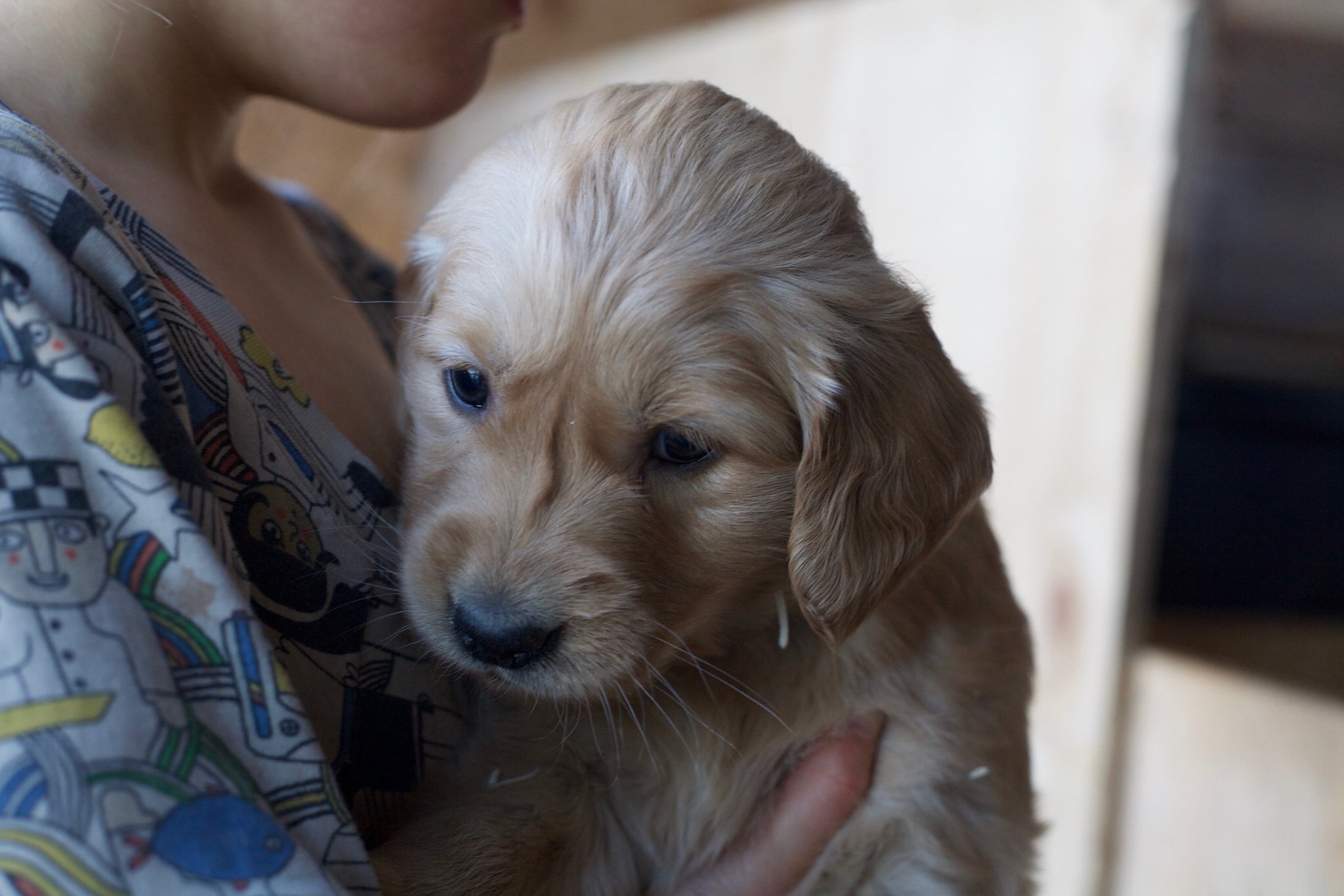 Hello! I have a green collar and I am the lightest puppy in the litter. I tend to like to see what’s going on and I’m usually one of the first to come over to get a scratch. I generally sleep on my back with legs sprawled out. None of my sisters or brother sleeps this way. I’m AVAILABLE