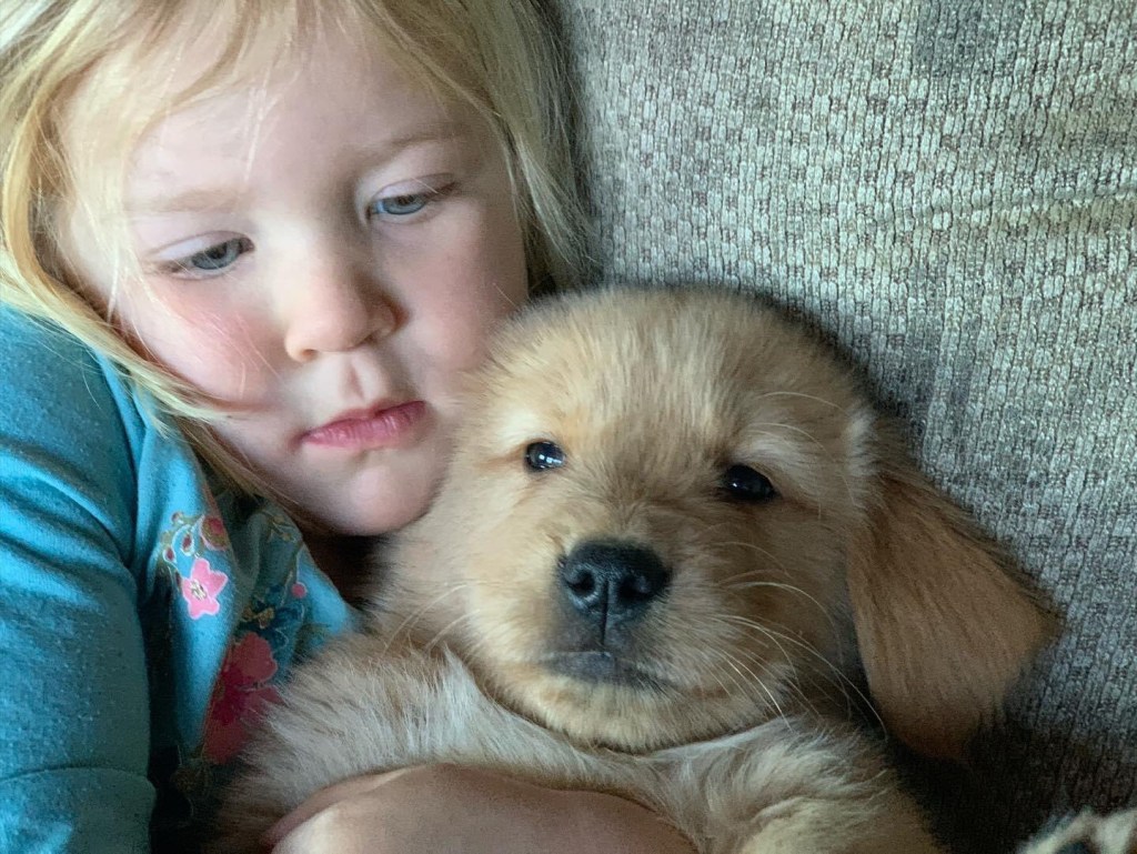 Little miss Red Is getting some special one on one time with my daughter who can’t get enough of the little fur balls. My children’s attentive, kind and playful nature under supervision has been great for the puppies growth and life experience. they all are an active part in rearing these puppies and it’s been fun watching them get interested in the different areas of puppy rearing. I think it’s safe to say my youngest daughter (pictured above) is a master at puppy snuggling!