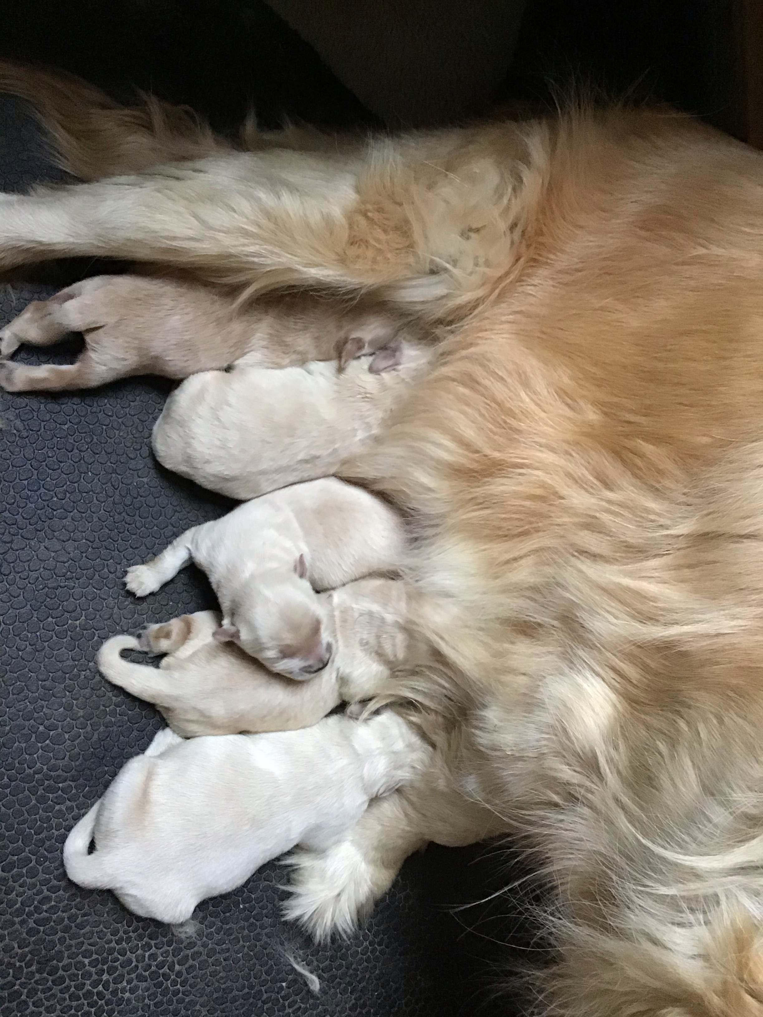 The beginning (though Teagan does much of the work) is very hard for us humans too. Some dogs after birthing become SO choosy on what they will eat so if you don’t have a wide variety of tasty morsels for her to (hopefully) eat she will quickly decline and puppies won’t get fed.