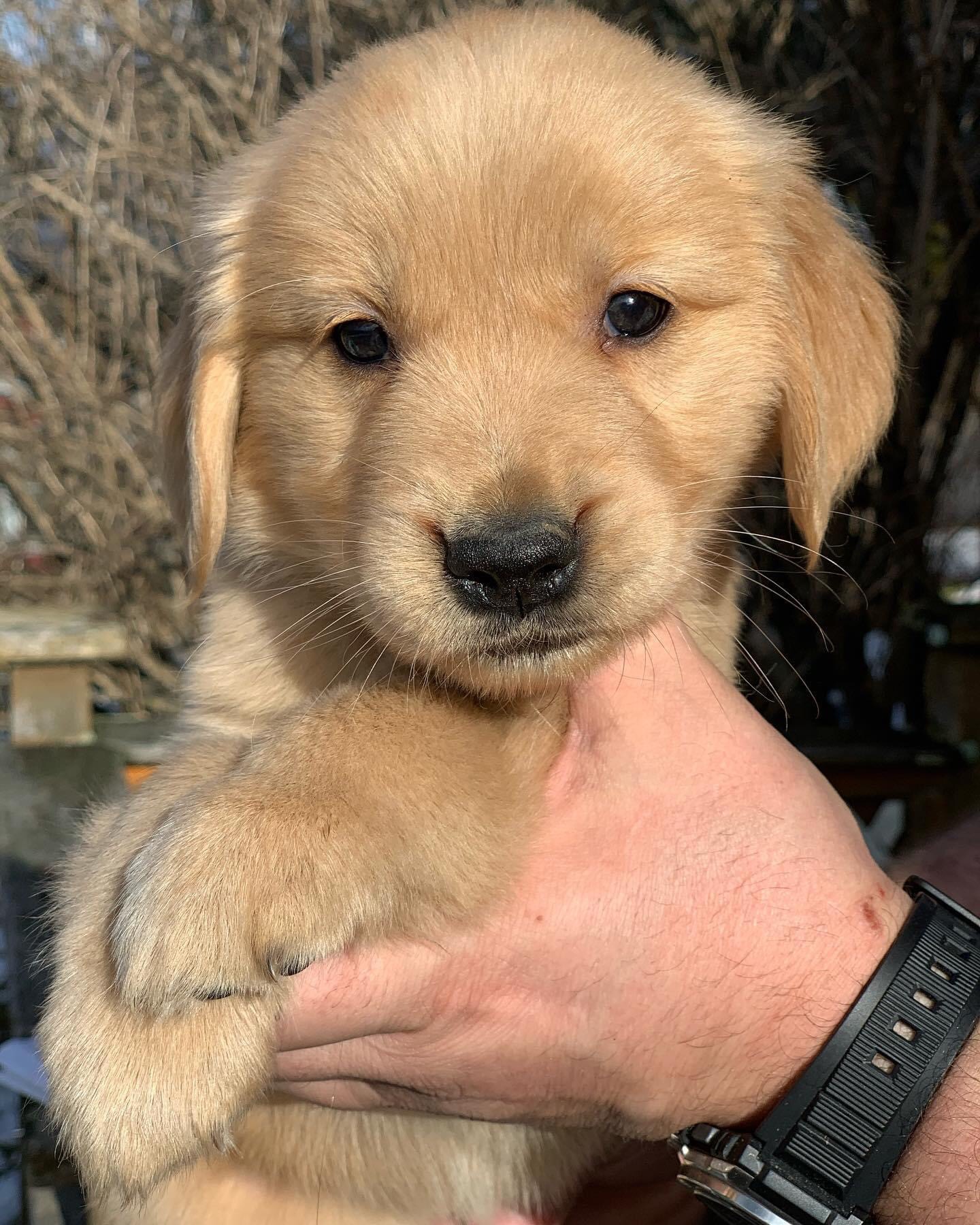Our nine AKC GOLDEN RETRIEVER Puppies just turned 7 weeks old. Here are a few snapshots from yesterday! they are full of life, healthy and loving. We will be taking them to the vet for their checkup on the 10th this month.